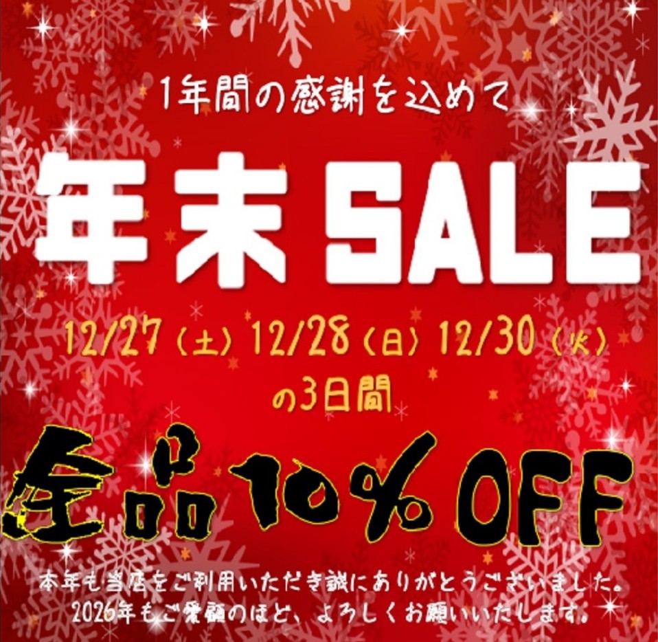 年末全品10%OFFセールを開催します!